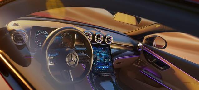 车长超过4.8米,奔驰CLE的外观设计简直是“回头率制造机”。车头宽大,带着经典的奔驰大标,引擎盖上两条筋线,硬朗又不失优雅。侧面看,低趴的车身,19英寸大轮毂,单侧单开门,敞篷版更是拉风到不行。尾部设计也很有心思,双边双出的排气管,跑车声浪一开,街上绝对是最靓的仔。